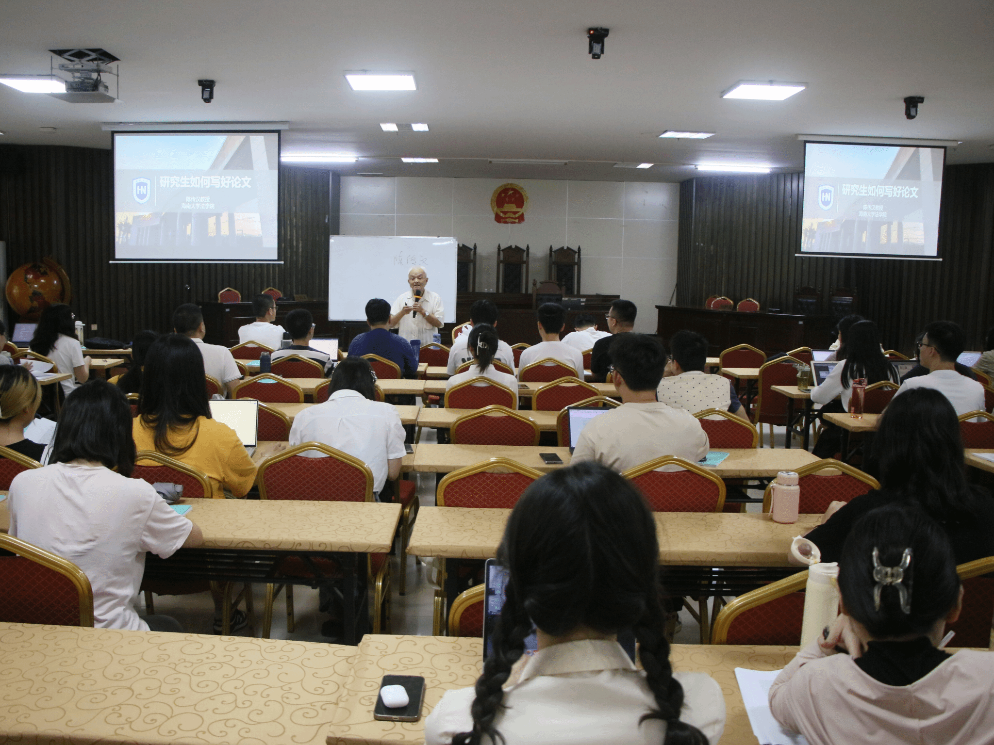 陈传汉教授以学报主编所具有的丰富的学术经验和专业知识,详细介绍了论文选题、文献综述、文章撰写、注释引用和文章格式等研究生论文写作全流程内容。重点从“读书”“选题”“论文材料”等三个角度出发,全面分析了研究生论文写作中存在的问题与困难,并给出针对性的解决建议:读书是写作的前提;选题是写作的第一步;论文材料是形成优秀论文的必要条件。整场讲座主题鲜明、脉络清晰、逻辑缜密,既有理论知识,又有案例分析,是一场接地气的讲座。