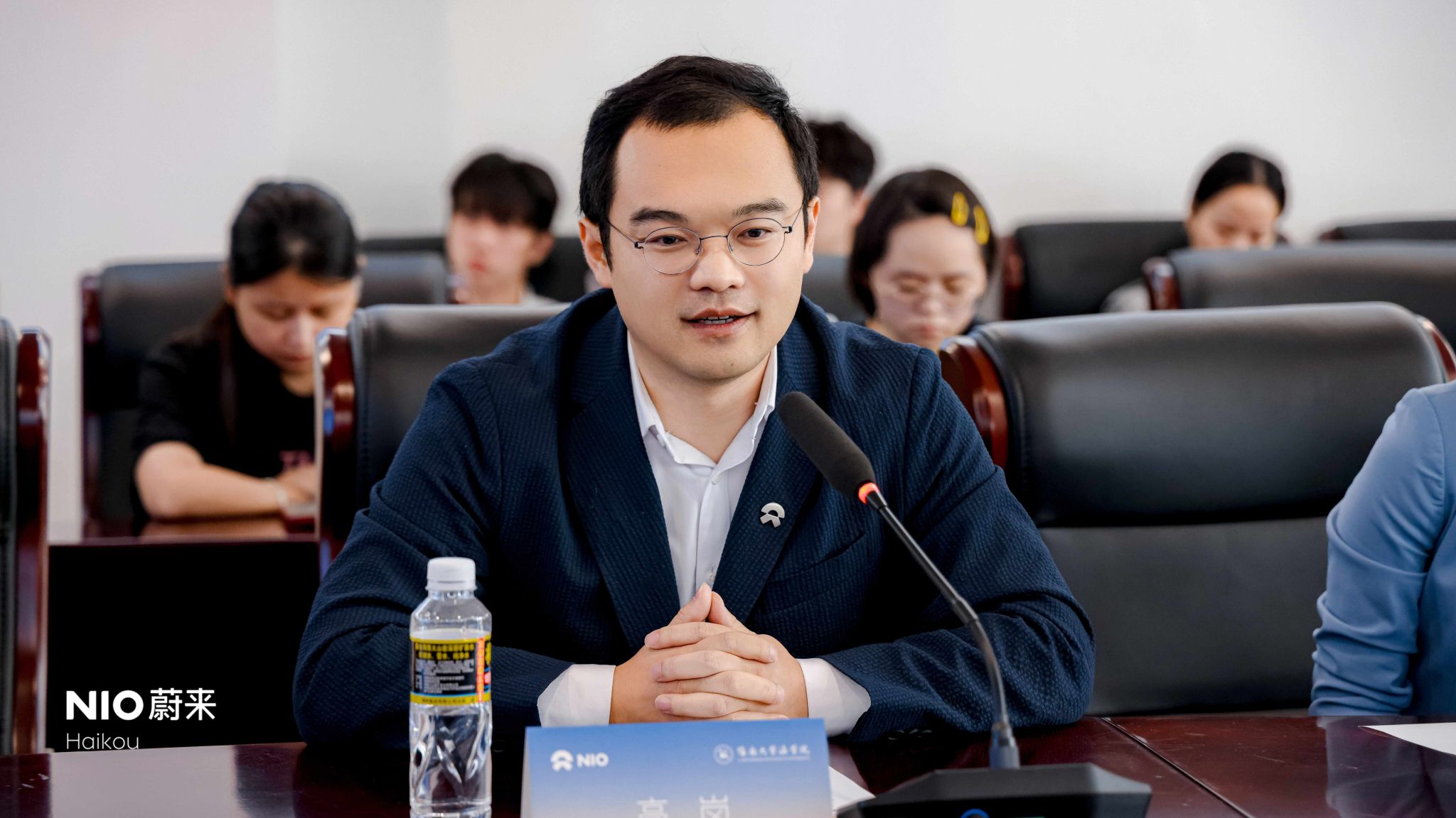 会上,蔚来海南区域总经理王志娟从产品、科技、能源、服务和社区五大方向与会师生分享了蔚来业务及发展、海南的基础设施建设等内容,期待在后续的深度合作中资源共享,实现共赢。