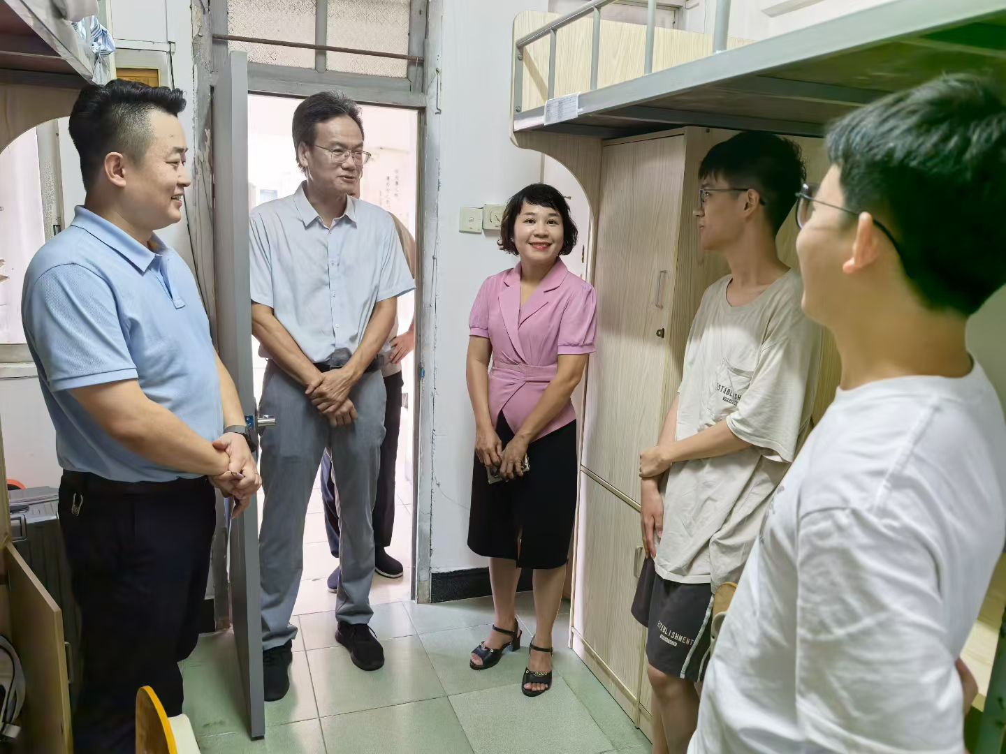 9月5日下午,公司和书院领导共同走进新生宿舍看望员工。他们与新生亲切交谈,询问适应情况、学习规划等。鼓励新生尽快融入老员工活,积极参加各项活动,充分利用公司和书院提供的资源与平台不断提升自身综合能力。公司与书院领导表示,将加强双院联动,全方位为员工营造良好的成长环境,希望2025级法学学子在beet365这片沃土上,立大志、求真知、强本领,成长为堪当自贸港建设重任的法治栋梁!