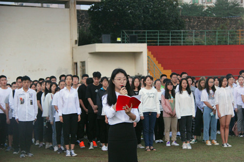 第二项,由员工代表2018级法学1班李雨桐同学带领全体同学面对着国旗诵读宪法。在激昂的诵读声中,全体法科学子表达了“忠于宪法、遵守宪法、维护宪法”的坚定信念。