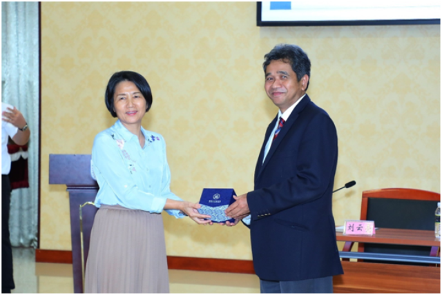 beet365beet365党委书记叶英萍向马来亚大学来宾颁发证书并赠送纪念品