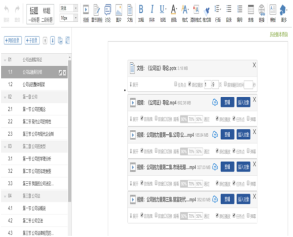 首先,构建合理的课程设计,充实课程内容。将整门课程进行合理分配,按照教学进度安排合理布局,统合教案、教材、学习视频、讲授视频、补充阅读材料等。