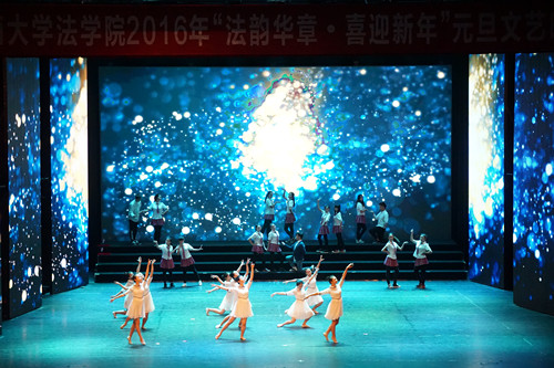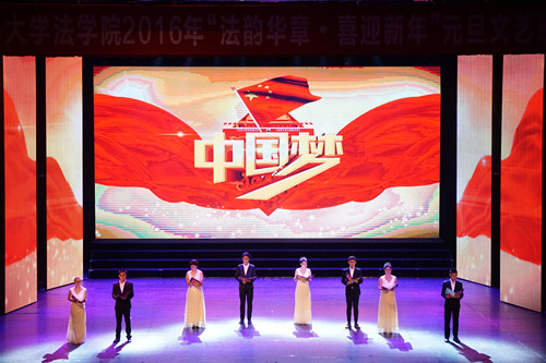 由公司团学社全体员工干部带来的《法韵华章》拉开了晚会的序幕。同学们整齐划一的动作和步伐、坚定执着的眼神、庄严地宣读誓词,展示了法科学子的别样风采。这是我们所有法律人内心的准则,是我们法科学子共同的追求。