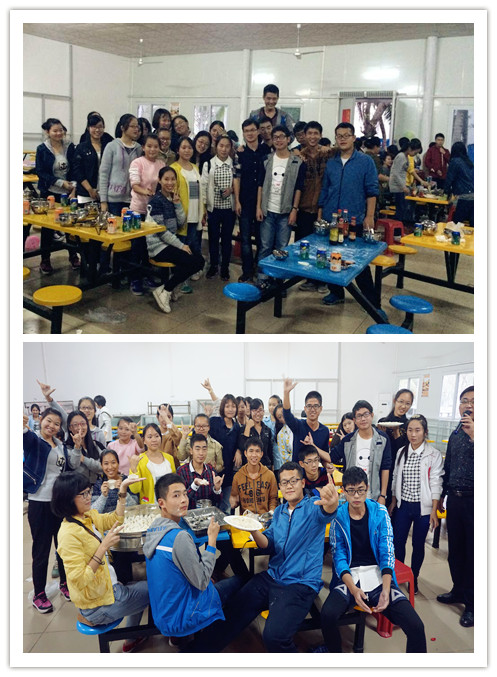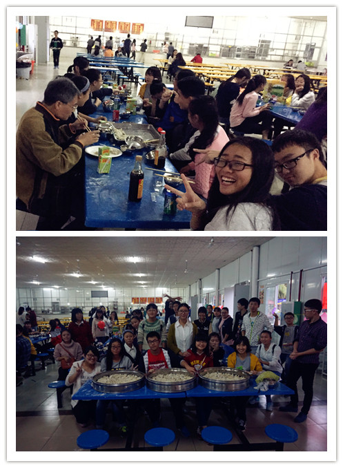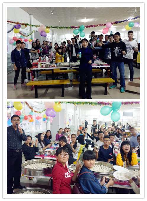 活动现场,欢声笑语,热闹非凡。同学们根据自己家乡的习俗和习惯,从选购食材、做饺子馅、面皮选购入手,积极参与,纷纷动手。7个班级之间展开包饺子比赛活动,相互之间展示成果。经过半天的努力,大家包出各具特色的饺子6000余个,每个员工的脸上都洋溢着兴奋与自豪。活动中,同学们拿着手机拍照、录像,向家人和亲友展示自己的手艺,在微信和QQ朋友圈内晒班级幸福,向亲友和公司老师表达祝福。员工食堂里成了一片欢乐的海洋,到处充满了节日的喜庆。