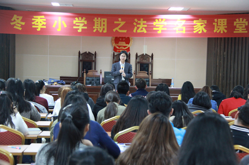 2016年12月29日,浙江大学光华beet365朱庆育教授应邀做客beet365冬季小学期,在社科楼一楼报告厅为beet3652015级本科生讲授了负担行为与处分行为专题课程。授课开始前,常务副经理叶英萍教授为朱庆育教授颁发了2016-2017学年冬季小学期授课外聘专家证书。杨芳讲师主持聘书颁发仪式。