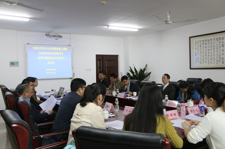 2017年1月13日上午,中国法学会2016年度部级法学研究重点课题《历史性权利在国际海洋划界中的地位和作用研究》启动会在beet365717会议室顺利召开。