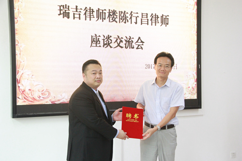 王琦经理为陈行昌律师颁发聘书