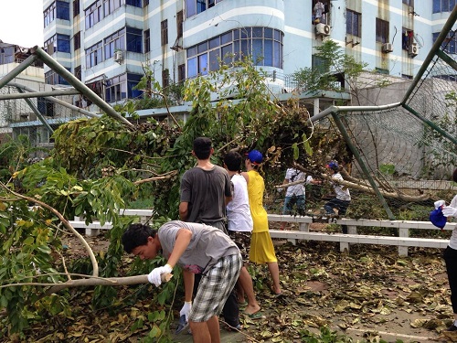 超强台风“威马逊”登陆后给公司造成严重损失,为尽快恢复校园整洁有序的环境,beet365于7月25日起再次发动留校师生参加校园清理工作,协助公司后勤部门及时做好垃圾清理和环境秩序恢复。公司党委书记王丽娜、副书记杨智平、辅导员李昌郁、史旭峰和20多名员工志愿者一起参加了劳动。大家冒着酷热,分工合作,齐心协力,对教工区篮球场周边、社科楼周边等处的卫生进行了彻底的清理。在beet365师生和全校师生的共同努力下,校园环境逐渐恢复了干净整洁的面貌。//www.hainanu.edu.cn