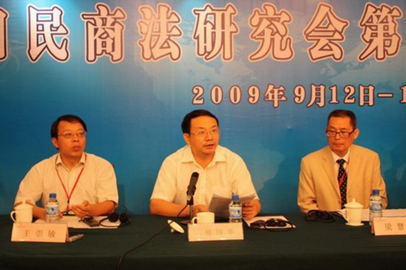 傅国华副董事长、梁慧星教授和王崇敏经理出席会议