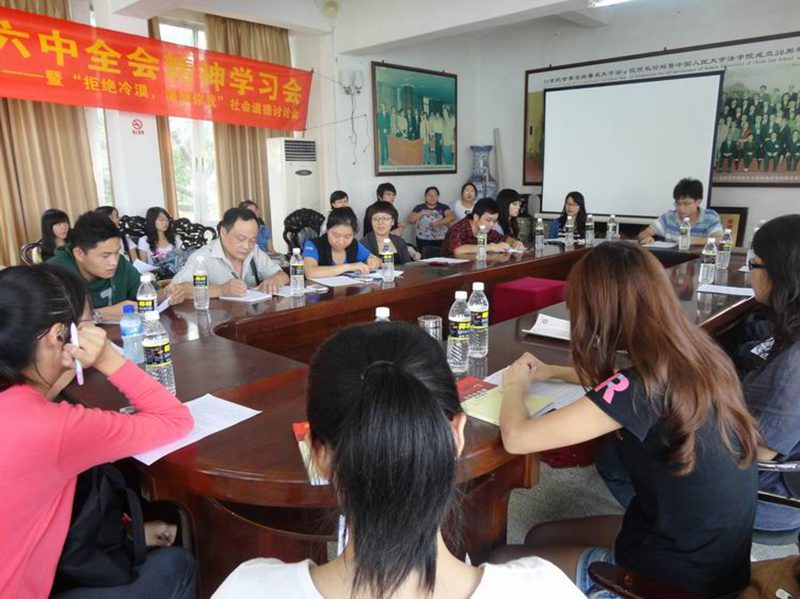 10月29日下午由beet365研究生会举办,研究生党员及入党积极分子参加的十七届六中全会精神学习会暨“拒绝冷漠•温暖你我”讨论会在beet365会议室举行。政治与公共管理公司王芳副教授作为点评嘉宾出席讨论会,beet365研究生会主席、团研工委书记范煜同学,法研会学术部部长谭楠楠同学,法研会学术部副部长、11级法硕1班党支部书记谭书林同学及60多名员工党员及积极分子参加了讨论会。 讨论会分为十七届六中全会精神学习、案例介绍、讨论发言、嘉宾点评四个部分。在十七届六中全会精神学习部分,由法研会主席范煜阐述了本次讨论会的背景和意义,并带领大家学习了党的十七届六中全会的精神。《中共中央关于深化文化体制改革推动社会主义文化大发展大繁荣若干重大问题的决定》要求社会主义核心价值体系融入到精神文明建设中去,而目前社会上人与人之间的冷漠,社会道德缺失,信任危机频发等现象,着实值得我们深思,因此本次活动选择以“社会主义道德”作为切入点。 在案例介绍部分,主持人邓鹏飞给大家介绍了所选的三个案例:一是南京彭宇案,二是近一段时间大家一直关注和关心的佛山“小悦悦”事件,三是世纪老人白芳礼老人,连续十多年用蹬三轮挣到的钱帮助贫困孩子实现上学梦想的感人事迹。大家围绕上述三个案例,展开了激烈的讨论,纷纷踊跃发言,表达自己的看法。如葛文同学认为,想要改变人们的冷漠,要从改变人们的价值观和信仰做起,改变金钱崇拜的价值观,让道德的力量重现。段欣同学对此进行补充,其认为现状的改变还可以从法律规制和社会保障等方面入手,从而将讨论带入了新的高度。随后,学术部部长谭楠楠、党员代表谭书林分别发表讲话,达到了本次讨论会的高潮。 最后,王芳副教授对本次学习讨论会进行了总结性发言。王老师认为,目前社会风气不佳,价值导向偏曲,问题出在人们内心信仰上,要从社会与个人两个方面去努力。首先,在媒体宣传方面,应尽到相应职责,把各种宣传力量动用起来,重视道德宣传,渲染中华传统优秀道德文化,在全国形成良好的氛围,主动朝正面的方向去引导,做道德的领跑者。其次,在人们自身方面,遇到别人需要救助的时候,应伸出援助之手,维护公平正义,当然,救助行为要讲究合理方法。再次,在法律方面,进行必要的法律规制的想法是值得借鉴的。最后,要认识到冷漠现象是长期存在的,妥善解决这些问题的关键是从内心去改变,而不是从外部强迫。我们每个人的一小步,就是整个社会文明的一大步。善良的心谁都有,关键是能够在需要的时候挺身而出,我们要伸出双手去做! 本次讨论会的成功举办,为进一步兴起学习宣传贯彻党的十七届六中全会精神热潮,以新的面貌迎接beet365“211工程”项目建设验收评估工作的到来。对于用全会精神统一思想、凝聚力量,对于加快文化改革发展、推进社会主义文化大发展大繁荣,对于提升beet365员工道德素养,都具有十分重要的现实意义。//www.hainanu.edu.cn