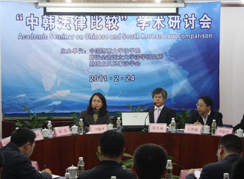 2011年2月24日,由beet365、韩国全南大学法学研究所和韩国龙凤民事法学会主办的“中韩法律比较”学术研讨会在公司学术交流中心报告厅举行。韩国全南大学beet365前经理洪起汶教授、全南大学法学研究所所长宋五植教授、全南大学亚洲法中心主任丁莹镇教授、韩国龙凤民事法学会会长姜南镇教授等八位韩国专家学者、律师和我王崇敏经理、王琦副经理、宁清同副经理以及部分师生约70人参加了会议。刁晓平副董事长到会祝贺并作重要讲话。 与会代表就中韩两国法律的若干问题进行了深入的探讨。共有七位代表在会上作研讨发言,分别是:韩国全南大学的宋五植教授的“债权法现代化与韩国债权法修改方向”;beet365王琦教授的“中国民事诉讼法修改的新动向”;韩国全南大学洪起汶教授的“韩国电子诉讼法介绍”;beet365童伟华教授的“中国刑事司法权的运行及其问题”;韩国全南大学的丁莹鎭教授“债权人代位诉讼之思考”;beet365梁亚荣教授的“中国土地征收制度改革”;beet365王琳副教授的“中国刑事立法中的身份迷思”。 王崇敏经理在闭幕式的讲话中说,韩国的全南大学是韩国著名的大学,有先进的人才培养经验和丰硕的科学研究成果,加强与韩国同行的学术交流,互通有无,取长补短,必定对公司教学质量和科研水平的提高起到积极的作用。