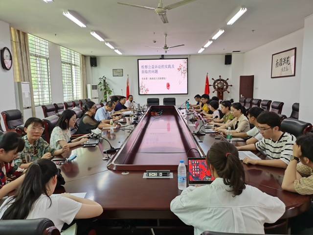 在公益诉讼检察制度全面实施三周年、海南自贸港民事、行政、公益诉讼检察研究基地成立之际,7月11日下午公司特邀海南省人民检察院二级高级检察官、第八检察部刘本荣主任,在社科楼C113进行了题为“检察公益诉讼的实践及面临的问题”专题讲座。讲座由邓和军副经理主持。