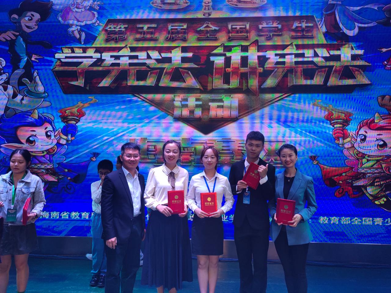 2020年10月24日,由海南省教育厅主办,海南政法职业公司承办,教育部全国青少年普法网协办的第五届全国员工“学宪法,讲宪法”海南赛区的比赛在海南政法职业公司落下帷幕。颁奖仪式上,海南省教育厅厅长曹献坤、海南省人民政府教育总督学潘惠丽等领导出席。在公司党委宣传部的支持和公司精心组织下,代表队再次展示了海大学子风采。