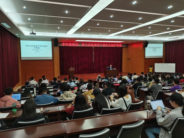 3月24日晚上,法学讲堂第47期之“两大法系背景下的作品保护制度”在五教二楼模拟法庭举行,讲座由中国社会科公司知识产权中心研究员、中国知识产权法学研究会常务副会长李明德教授担任主讲人,由beet365董万程教授担任主持人,beet365百余名师生共同参与本次讲座。