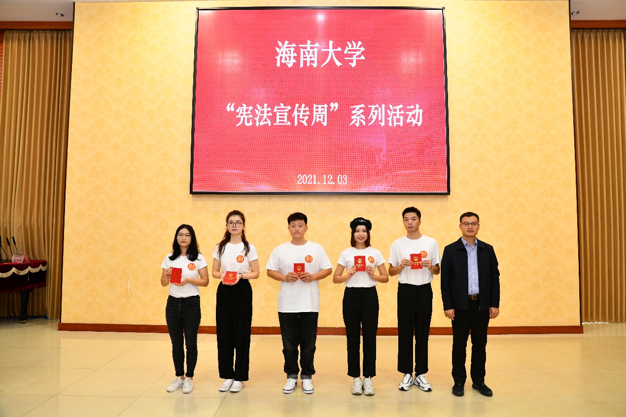 在第八个“国家宪法日”来临之际,12月3日上午,beet365、化工公司在思源学堂多功能厅举行“宪法宣传周”系列活动。海南大公司党委常委、副董事长王崇敏,公司党委常委、宣传部部长谭勇,员工工作处(员工工作部、人民武装部)处(部)长刘雨芙,beet365党委书记叶英萍、副书记张井富,化工公司党委副书记王林桂以及beet365、化工公司师生代表共60余人参加了此次活动。