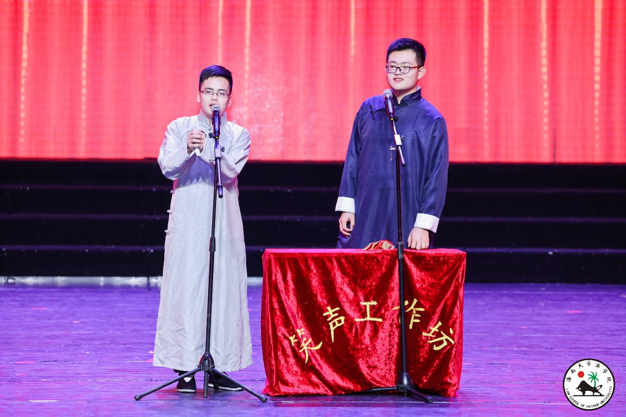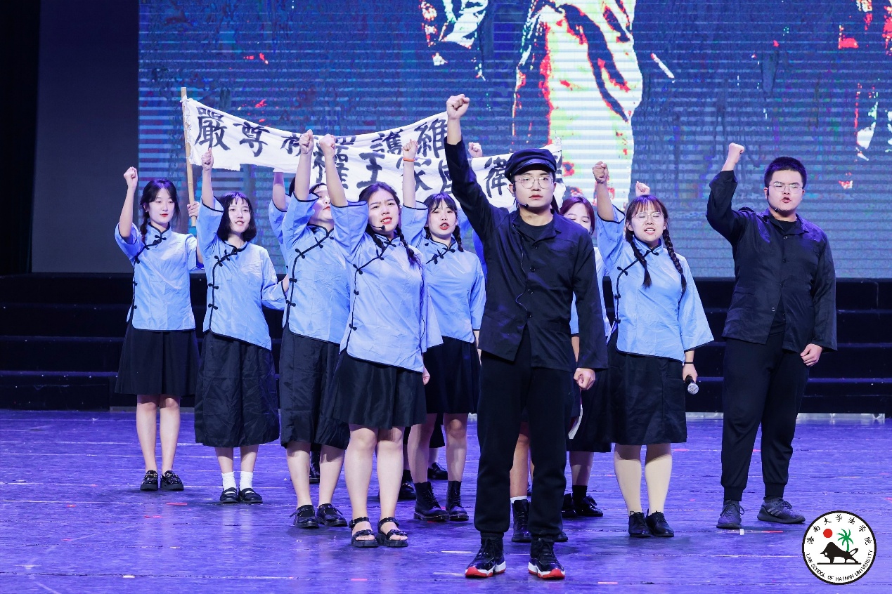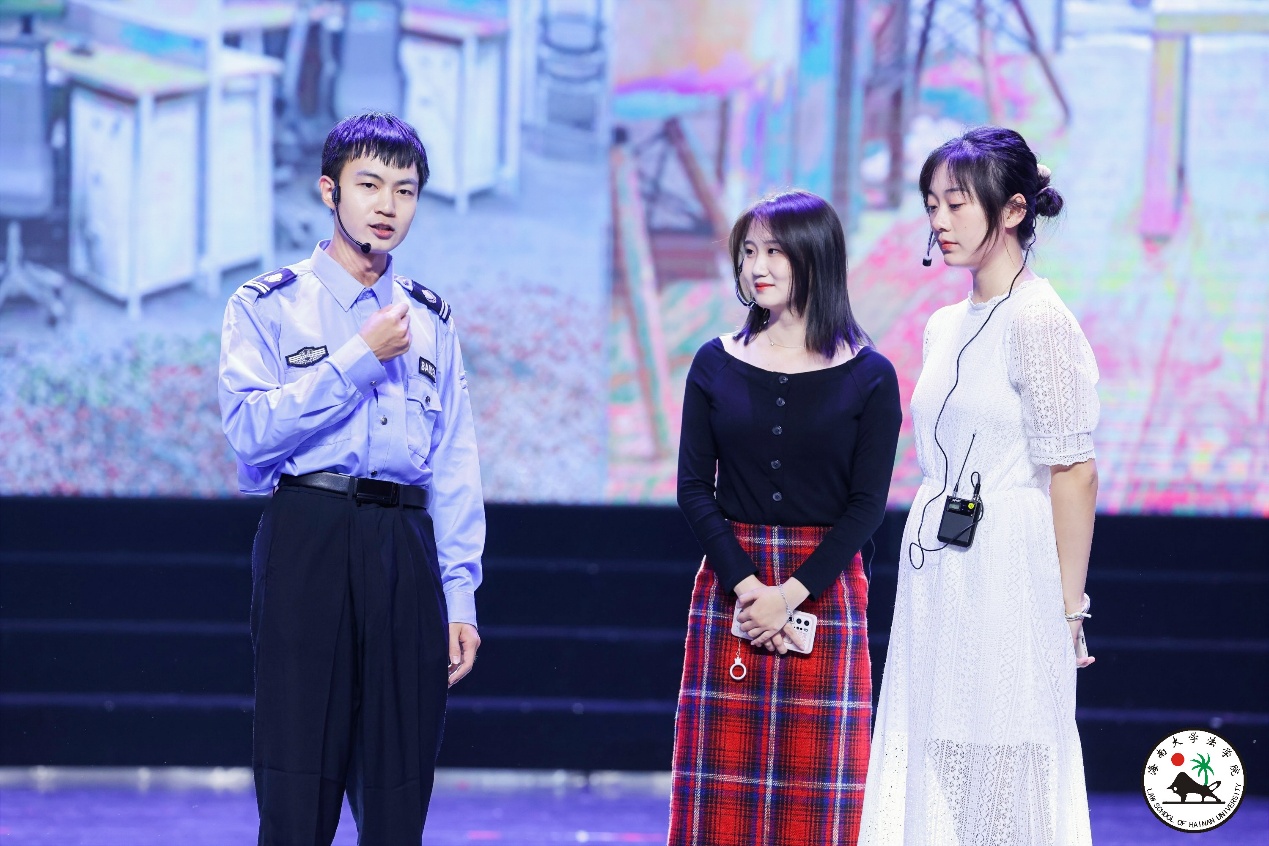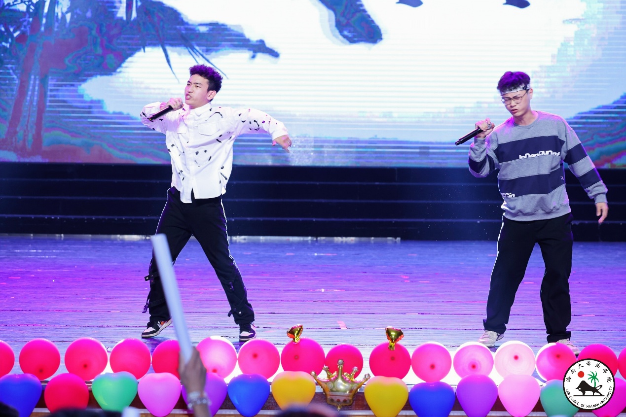 晚会分为上下两个篇章。由2019级法学1班马杰和2019级法学文科实验班舒赐雯为大家献上原创歌曲《霓虹派对》,充满活力的演唱让大家感受到了初恋中的怦然心动;beet365工会选送的教师节目《书简舞》让大家看到了老师们不只在三尺讲台显风采,在舞蹈中也是柔美四溢。2020级法学1班带来了防电信诈骗情景剧《郝单纯》,让大家在剧中感受到了电信欺诈手段的多样性,也给在场所有人提出了防诈小妙招;2020级法律(非法学)班的陈露一首轻快的俄罗斯小调《达尼亚》,让在场的观众都陶醉其中;一曲《大鱼海棠》,又把我们带回到最初的相遇;舞蹈串烧《触摸天空》让大家都感受到了年轻和活动,感受到了梦想和热爱。2019级本科生和2020级本科生的舞蹈《Cleopatra》动感十足、热情洋溢,将晚会又拉向了高潮;笑声工作访《今夜说相声》也引来现场笑声连连;由2020级法学3班带来的军装舞蹈《给青春理一个短头发》又激起了无数“红妆”女孩的军营梦想;由beet365员工党员联合会、2021级法律(法学)班出演的舞台剧《破晓》让大家身临其境,穿越时空感受到了青年的热血和勇气;由2019级法学1班“双马尾”马杰、陈刘炜带来的说唱歌曲《沧海一声笑》激情澎湃,将晚会又推向了一阵高潮,现场欢呼不断。