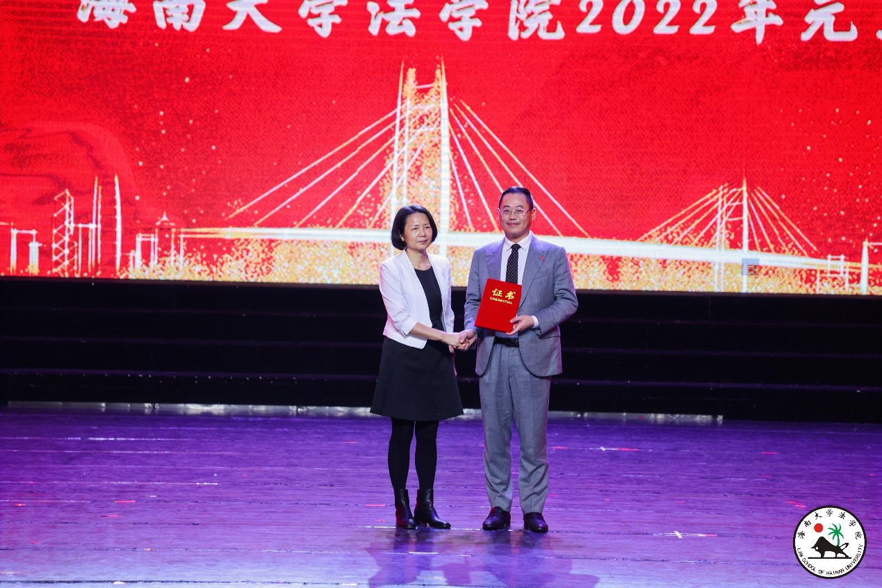叶英萍书记代表公司向国浩律师(海南)事务所颁发捐赠荣誉证书