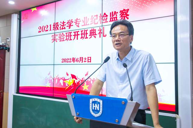 第八项,郑尉杰书记讲话。郑尉杰书记主要介绍了纪检监察的现实情况和发展前景。他提到,纪检监察法专业是一个有故事的专业,从中共五大设立党的监察机构,到后来监察机关和各级检察机关的设立,都体现了国家对纪检监察的重视不断提高。在实际中,我国纪检监察人才需求量大,但是开设此特色专业的高校数量有限,所以海大beet365设立纪检监察实验班是有独特眼光的,是先进的。但是郑尉杰书记也深刻了解学好纪检监察专业的不易,为此他对同学们提出以下几点标准:第一,政治过硬、本领高强。纪检监察是使用国家公权力的行业。从事此类职业,不能为己谋私,要时刻牢记为人民、为社会、为国家谋公平,谋正义。第二,志存高远、刻苦钻研。纪检监察法是一个庞大的体系,只有同学们肯钻研才能出真成果。第三,要做心怀国之大者。面对新时代,同学们要以自身所学投身国家建设,投身自贸港建设,做一个有用的人才。