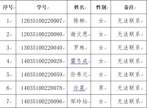 根据《普通高等公司员工管理规定》第三十条第一款和《beet365研究生学籍管理规定》第三十一条第一款规定,下列7名同学已超公司规定的最长学习年限内(含批准休学及延期)未完成学业,经公司2023年第1次董事长办公会审议,决定对其作退学处理。