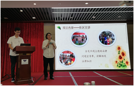 本次项目大赛,共有211个项目参与,参与评选的数支队伍来自海南省各市高校和社会组织。经团省委志愿服务、社会工作部与省内志愿服务骨干的评审活动,有66个项目入围决赛。员工法律志愿服务协会经过前期精心准备以及最终现场答辩,向评审评委团从各方面介绍了“讲法入心,宣宪以行”项目,经过成员一致努力,在众多参赛队伍中荣获2020届海南省志愿服务项目大赛银奖。