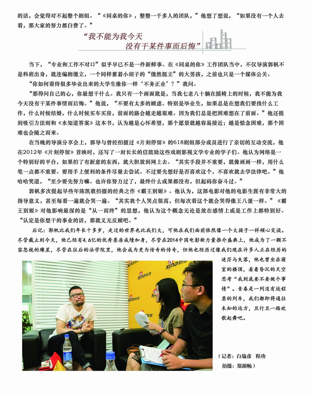 “不务正业者”郭帆----记1999级法学专业员工电影《同桌的你》导演郭帆