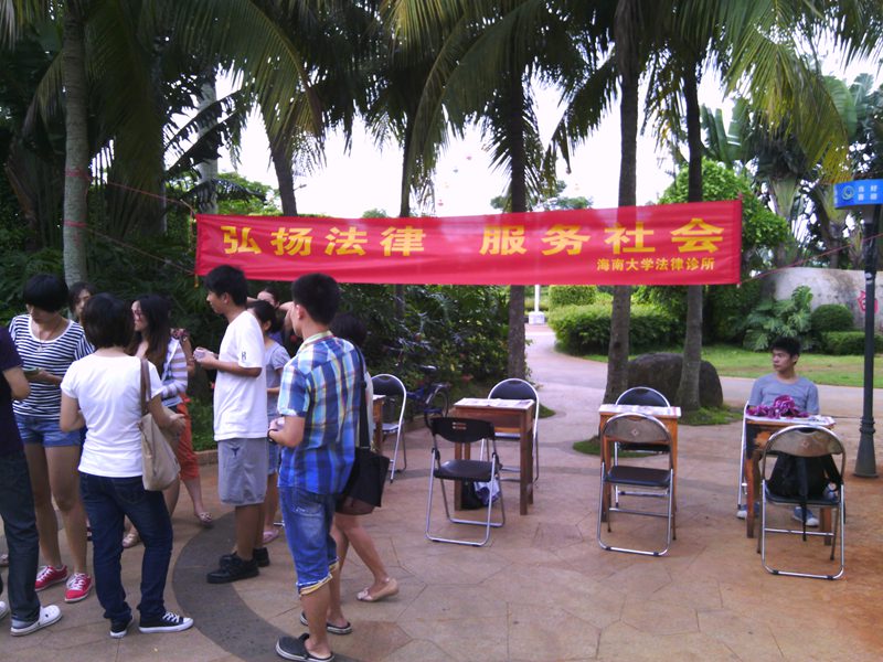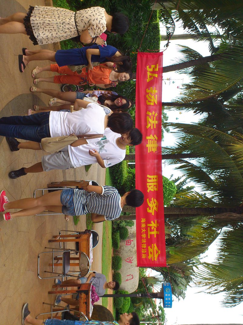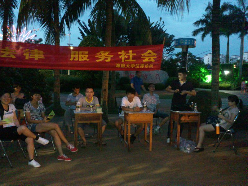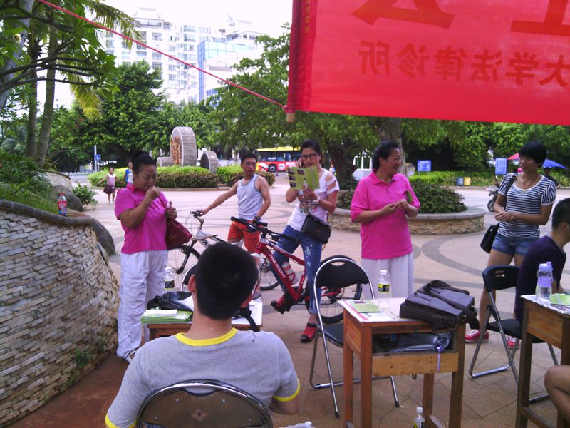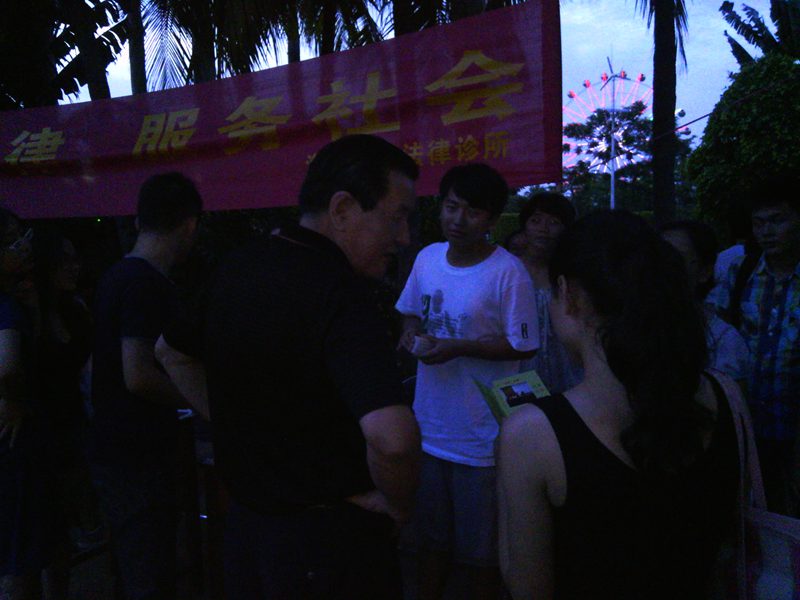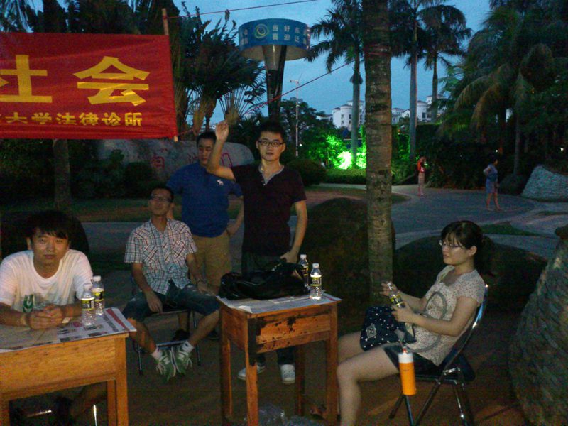 下午四时许,宣传活动正式开始。刚开始时,很多市民只是走走看看,我们诊所成员便主动上前给大家散发宣传资料及诊所名片,讲明我们的身份及其来意。到了傍晚下班高峰,现场便吸引来了不少路过的群众,对于前来咨询法律问题的群众,学员们都耐心的向对方讲解相关知识,并提出建议方案,在临走时还相互留下联系方式,以便进一步沟通。到了晚饭过后,随着出来散步、跳健身舞的群众越来越多,前来咨询的人数也大大增加,将活动现场氛围推向高峰。通过这次活动,学员们推广普及了法律知识,使群众感受到法律就在他们身边时刻保护着他们。在活动过程中同样也为学员创造了更多实践机会,学到在公司课堂上无法获得的社会知识,感受到了利用法律的知识为群众解决法律问题时的愉快,增长了实践能力,提高了学员们学习法律的热情。