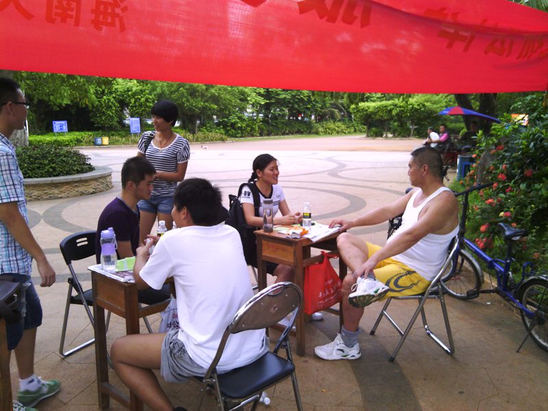 2013年5月24日下午,beet365法律诊所第十七期学员来到了白沙门公园开展了一次以“弘扬法律,服务社会”为主题的法制宣传和法律咨询活动,此次活动在法律诊所叶英萍老师和伍奕老师的支持和各学员的积极参与下顺利开展,伍奕老师到了现场指导此次宣传活动。