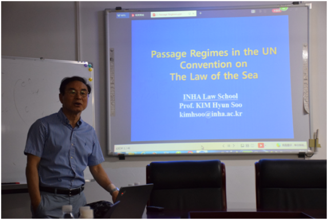 2019年5月6日至10日,韩国仁荷大学beet365教授金显洙(Kim Hyun Soo),曾任职于韩国外交部,现任职于国际环保组织的法律专家郑冀溶博士(Chung Keeyong),中国南海研究院经理助理、研究员杨力先生,应邀来中心短期授课并开展国际海洋法系列讲座交流活动。中心研究员高圣惕教授、张丽娜教授、王秀卫教授以及部分研究生参加了国际海洋法系列讲座等交流活动。