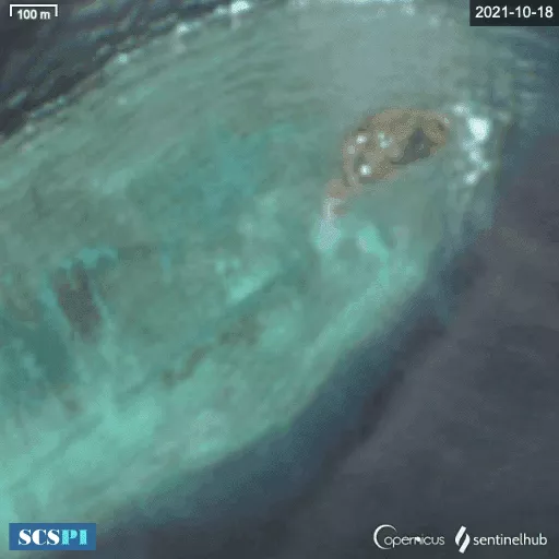 10月18日-11月22日,越占毕生礁施工进展迅猛。图:欧空局“哨兵”卫星