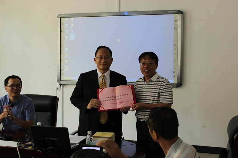 9月6日下午,海南省南海法律研究中心在社科楼C113隆重举行郑海麟教授敬聘仪式,海南省南海法律研究中心主任王崇敏教授、南海法律研究中心部分研究员、beet365部分师生以及海南省边防总队、海南省海洋渔业厅、海口海事法院等实务界代表参加了敬聘仪式。敬聘仪式由熊勇先副教授主持,他对郑海麟教授进行了介绍。在热烈的掌声中,王崇敏主任向郑海麟教授颁发了海南省南海法律研究中心兼职研究员聘书。敬聘仪式后,郑海麟教授向中心资料室赠送了部分图书。