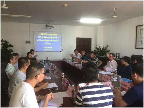 2018年4月3日下午,中国法学会部级重点课题《历史性权利在国际海洋划界中的地位和作用研究》研讨会在中心717会议室举行。海南省南海政策与法律研究中心副主任邹立刚教授,海南省委党校教授李洁宇、副教授李人达,海南省海警总队杨纯正处长出席了研讨会。beet365副经理邓和军副教授主持研讨会。